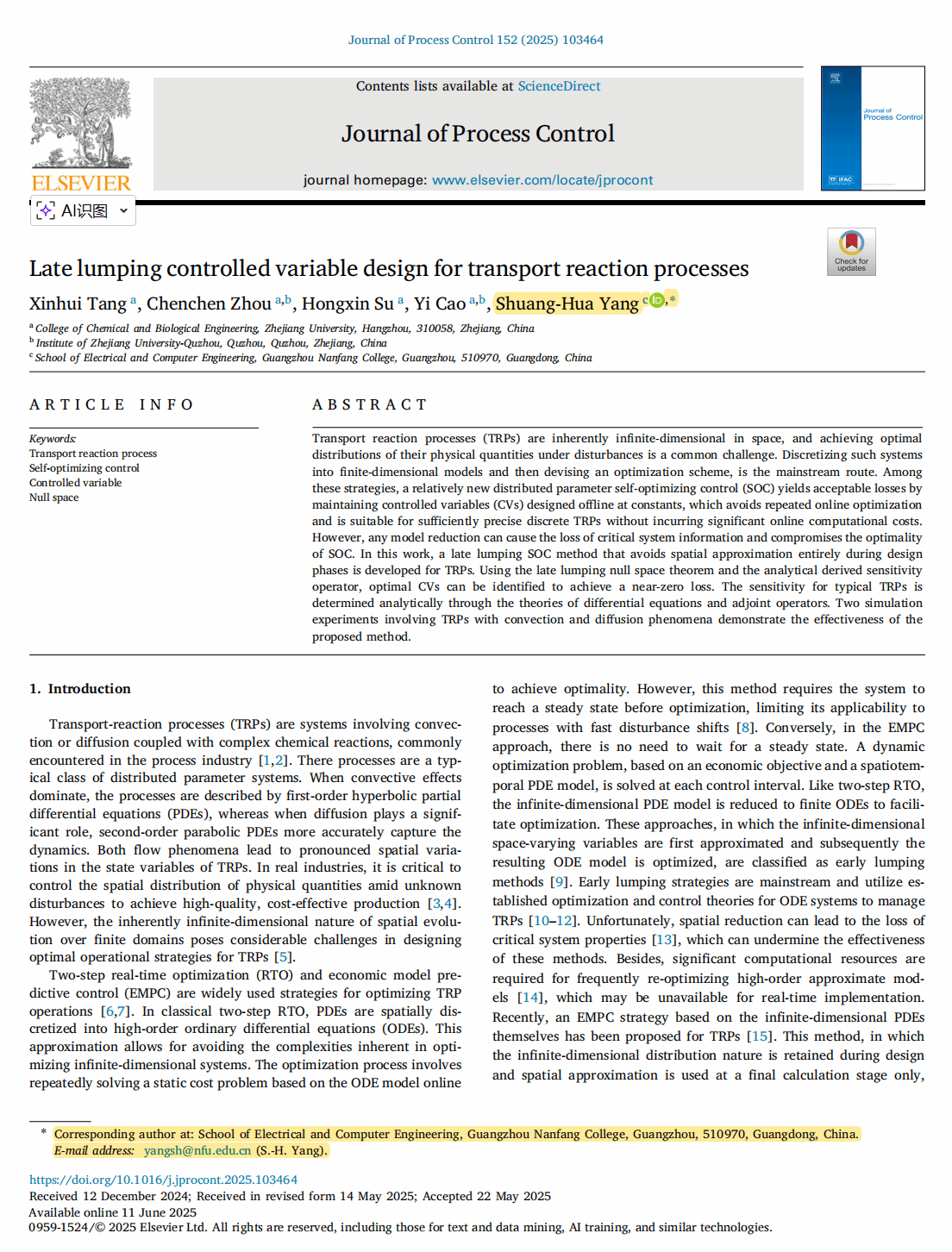 发表在《Journal of Process Control》,SCI论文,影响因子:3.9,JCR 2区,中科院3区